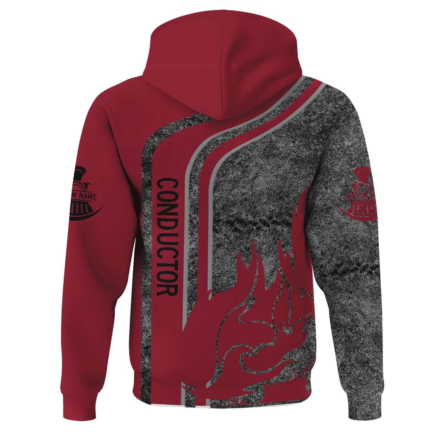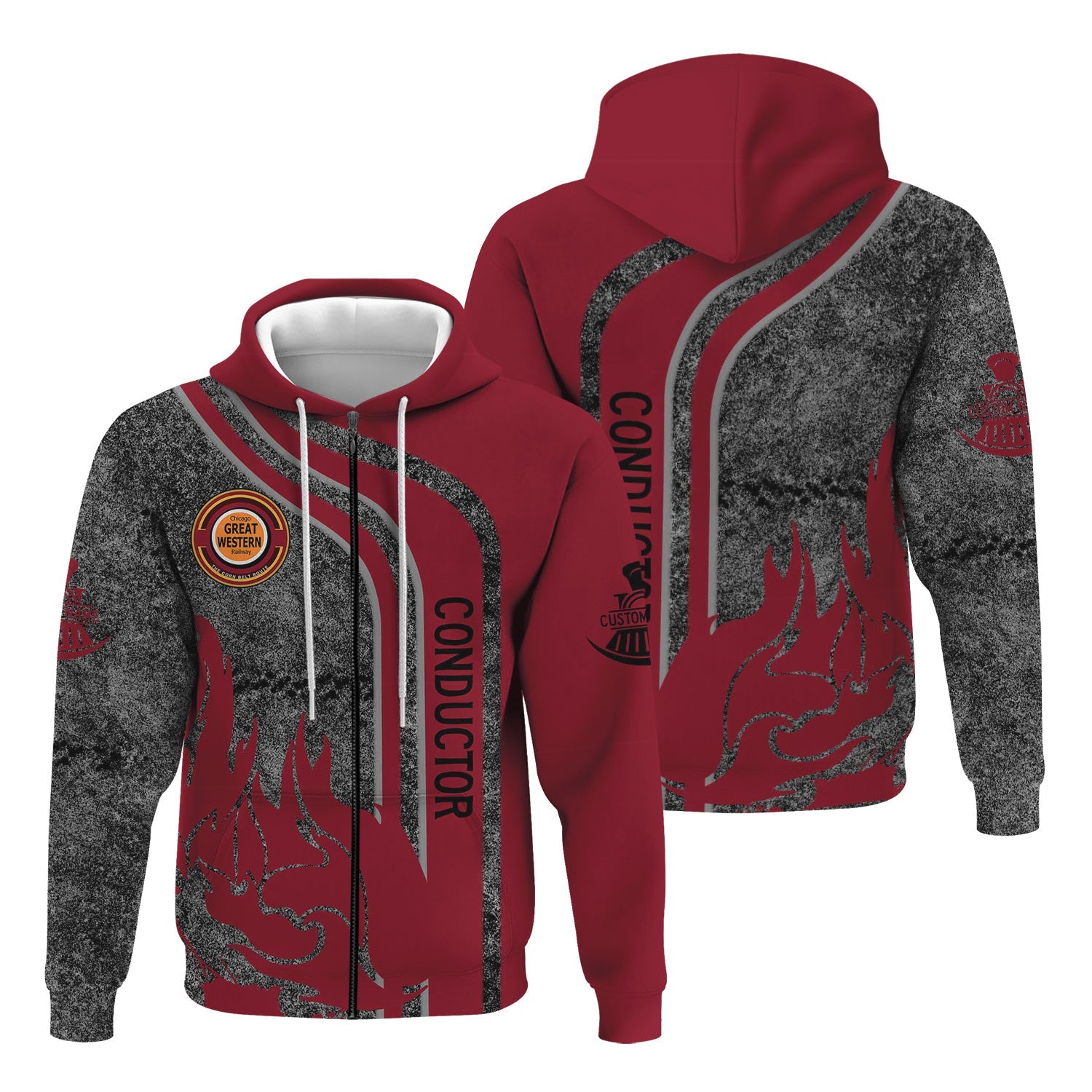 Railspirit Personalized Chicago Great Western Railroad Hoodie Flame Design with Custom Job Position Train Zip Up Hoodie
