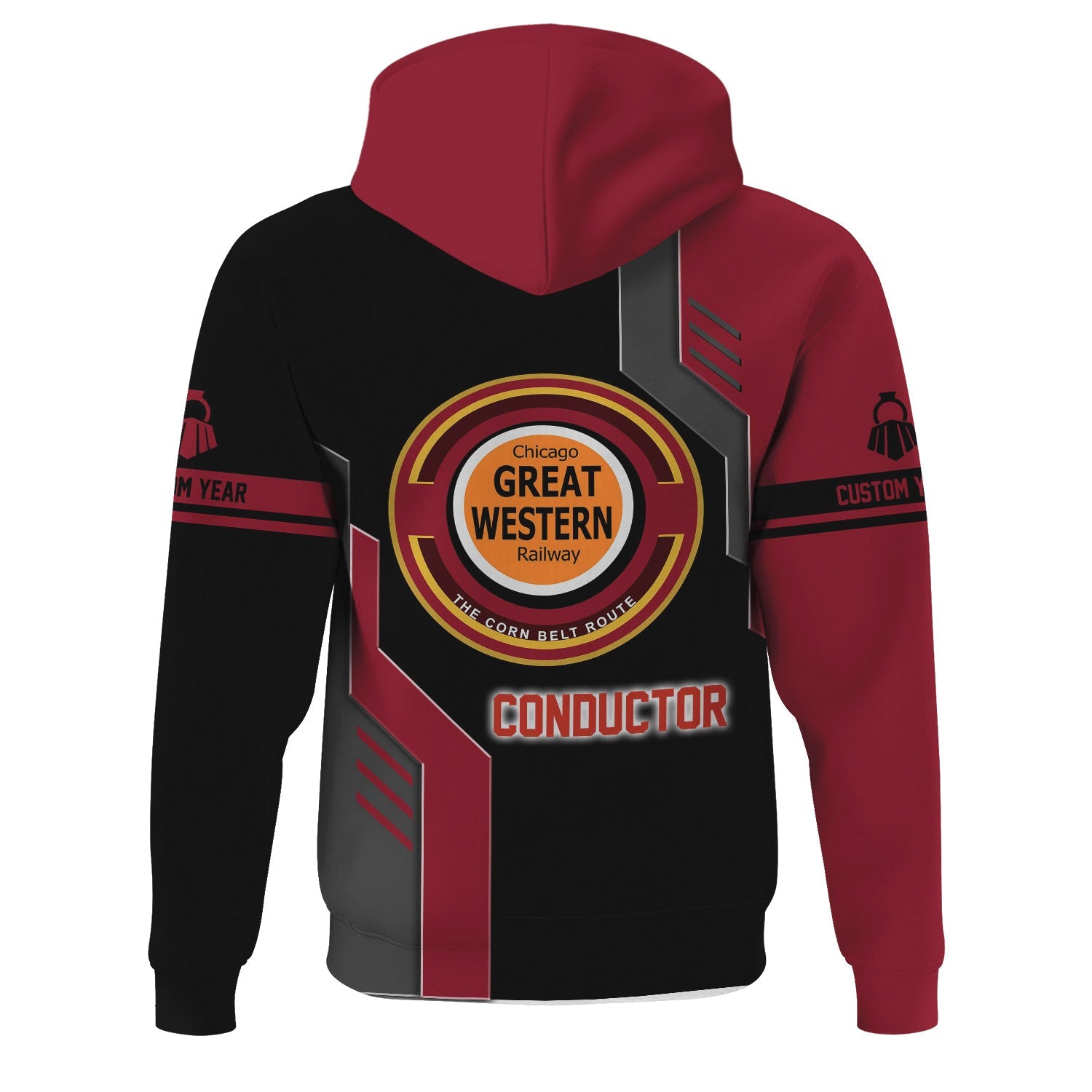 Railspirit Personalized Chicago Great Western Railroad Hoodie Unique Railway Style with Custom Job Train Zip Up Hoodie