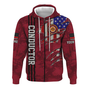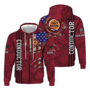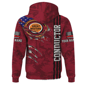 Railspirit Personalized Chicago Great Western Railroad Hoodie USA Flag Claw Art with Custom Job Train Zip Up Hoodie