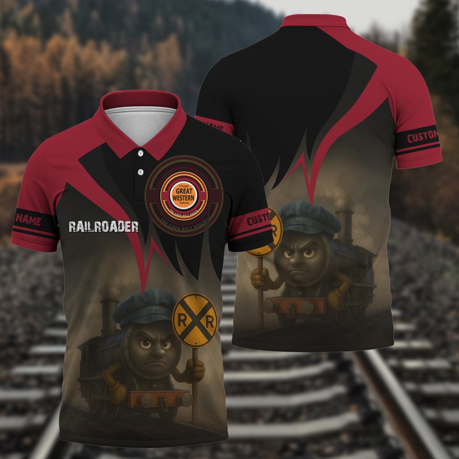 Railspirit Personalized Chicago Great Western Railroad Polo Shirt Angry Train Polo Shirt Gift Idea For Train Lover