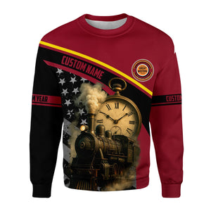 Railspirit Personalized Chicago Great Western Railroad Sweatshirt Classic Steam Engine With Retro Pocket Watch Shirt All Over Print