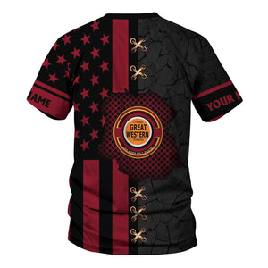 Railspirit Personalized Chicago Great Western Railroad T-Shirt American Flag with Crack Effect Train Shirt