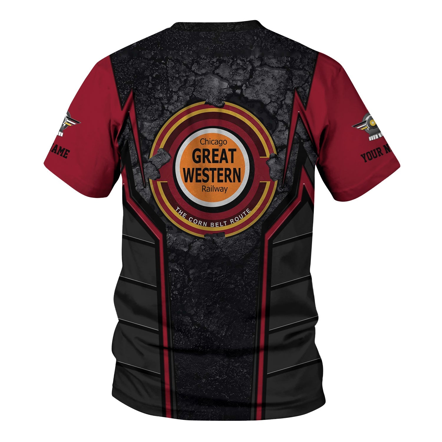 Railspirit Personalized Chicago Great Western Railroad T-Shirt Cracked Metal Design Train Shirt for Rail Enthusiasts