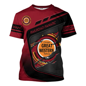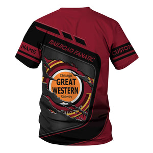 Railspirit Personalized Chicago Great Western Railroad T-Shirt Ripped Texture Style Train Shirt For Railroad Fanatic