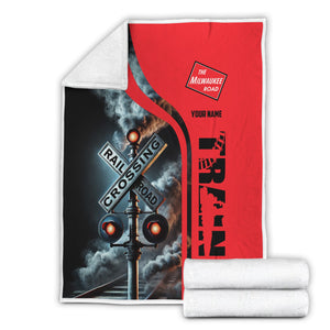 Railspirit Personalized Chicago, Milwaukee, St. Paul and Pacific Railroad Blanket Railroad Crossing Sign Milwaukee Road Blanket All Over Print