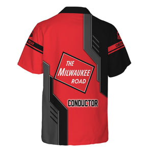 Railspirit Personalized Chicago, Milwaukee, St. Paul and Pacific Railroad Hawaiian Shirt Railway Style with Custom Job Milwaukee Road Train Shirt