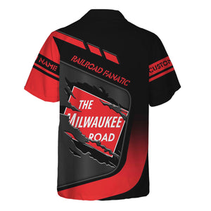 Railspirit Personalized Chicago, Milwaukee, St. Paul and Pacific Railroad Hawaiian Shirt Ripped Texture Style Milwaukee Road Train Shirt