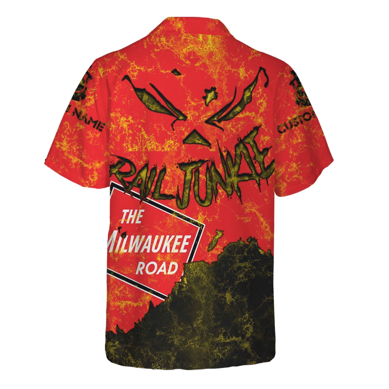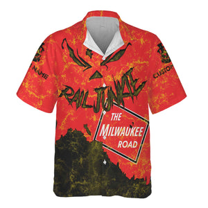 Railspirit Personalized Chicago, Milwaukee, St.Paul and Pacific Railroad Hawaiian Shirt Torn Graphic Style Milwaukee Road Train Shirt For Rail Junkie