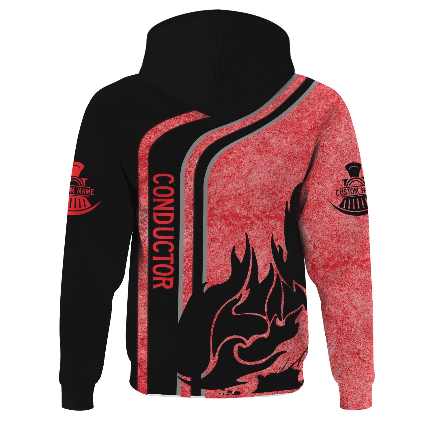 Railspirit Personalized Chicago, Milwaukee, St. Paul and Pacific Railroad Hoodie Flame Design Custom Job Position Milwaukee Road Train Zip Up Hoodie