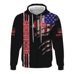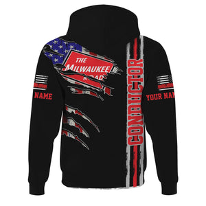 Railspirit Personalized Chicago, Milwaukee, St. Paul and Pacific Railroad Hoodie USA Flag Claw Art with Custom Job Milwaukee Road Train Zip Up Hoodie