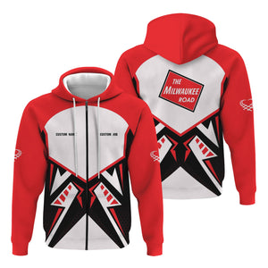 Railspirit Personalized Chicago, Milwaukee, St. Paul and Pacific Railroad Hoodie Vibriant Style Custom Position Milwaukee Road Train Zip Up Hoodie