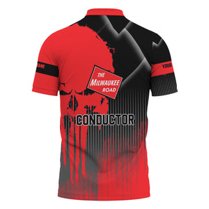 Railspirit Personalized Chicago, Milwaukee, St. Paul and Pacific Railroad Polo Shirt Skull Design with Custom Job Milwaukee Road Train Shirt