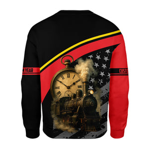 Railspirit Personalized Chicago, Milwaukee, St.Paul and Pacific Railroad Sweatshirt Classic Steam Engine With Retro Pocket Watch Milwaukee Road Shirt