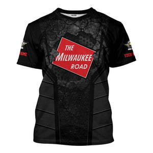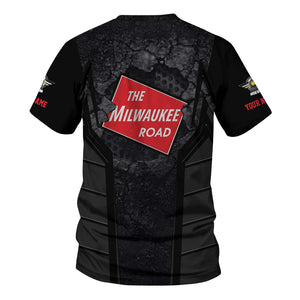 Railspirit Personalized Chicago, Milwaukee, St. Paul and Pacific Railroad T-Shirt Cracked Metal Design Milwaukee Road Train Shirt for Rail Enthusiast
