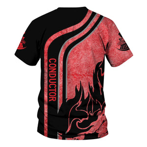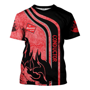 Railspirit Personalized Chicago, Milwaukee, St. Paul and Pacific Railroad T-Shirt Flame Design with Custom Job Position Milwaukee Road Train Shirt