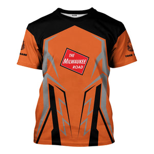 Railspirit Personalized Chicago, Milwaukee, St. Paul and Pacific Railroad T-Shirt Futuristic Design with Custom Job Milwaukee Road Train Shirt
