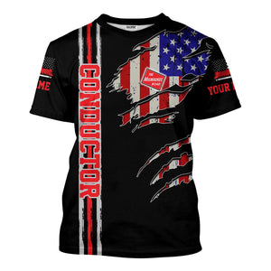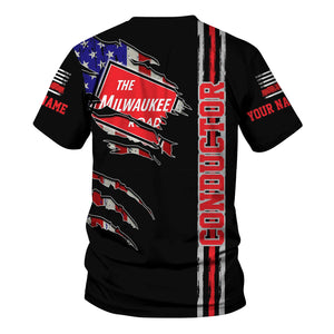 Railspirit Personalized Chicago, Milwaukee, St. Paul and Pacific Railroad T-Shirt USA Flag Claw Art with Custom Job Milwaukee Road Train Shirt