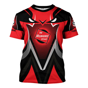 Railspirit Personalized Chicago, Milwaukee, St. Paul and Pacific Railroad T-Shirt Vibrant Graphic Pattern Milwaukee Road Shirt For Train Enthusiasts