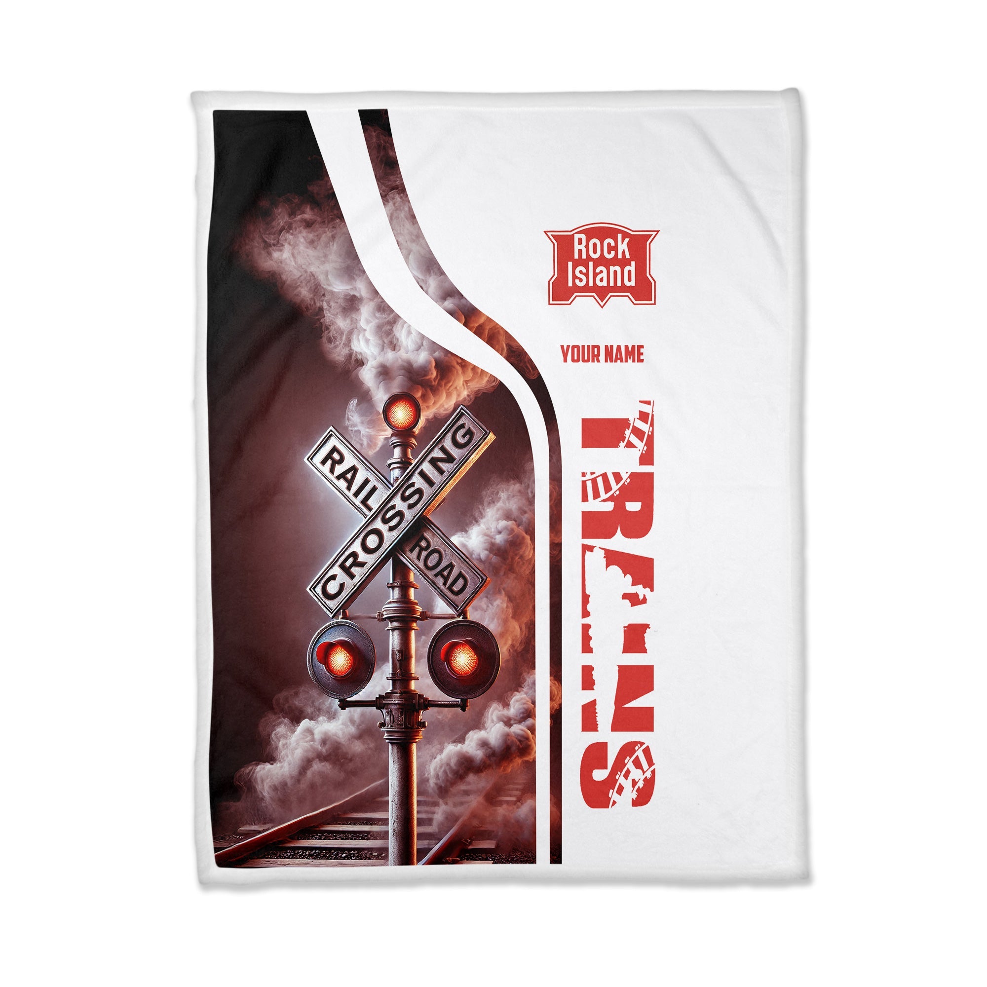 Railspirit Personalized Chicago, Rock Island and Pacific Railroad Blanket Railroad Crossing Sign Rock Island Railroad Blanket All Over Print