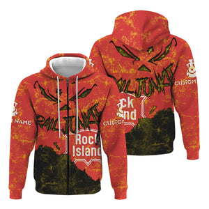 Railspirit Personalized Chicago, Rock Island and Pacific Railroad Hoodie Torn Graphic Style Rock Island Railroad Train Zip Up Hoodie For Rail Junkie