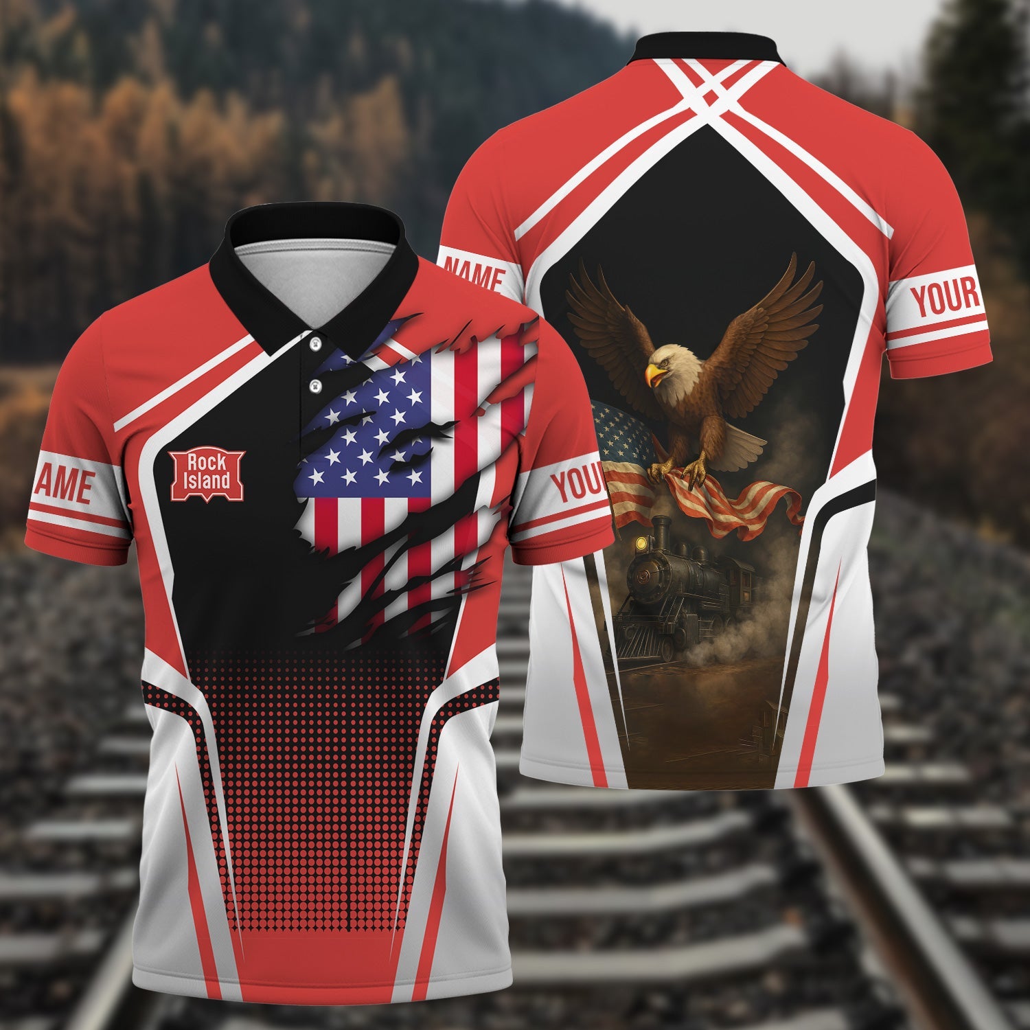 Railspirit Personalized Chicago, Rock Island and Pacific Railroad Polo Shirt American Eagle Vintage Train Rock Island Railroad Shirt