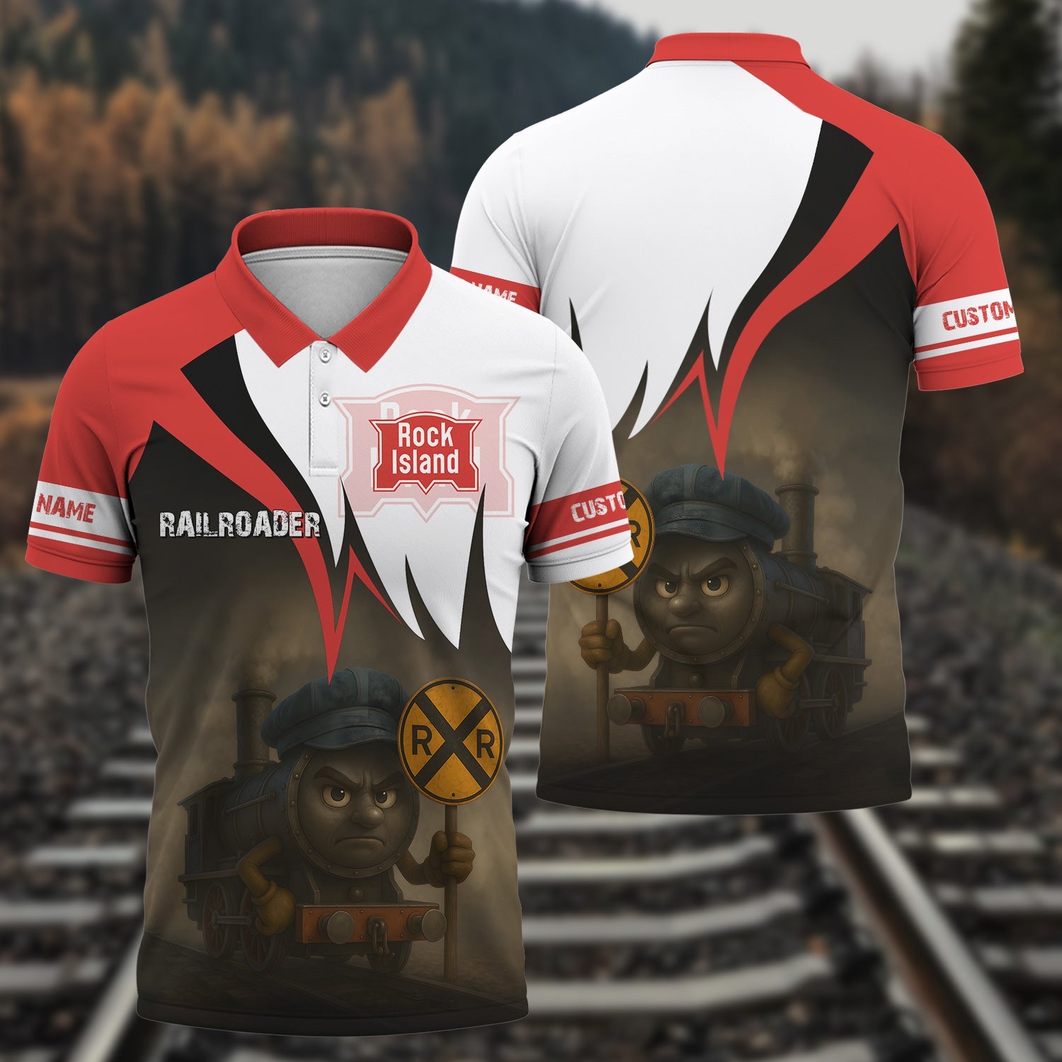Railspirit Personalized Chicago, Rock Island and Pacific Railroad Polo Shirt Angry Train Rock Island Railroad Polo Shirt Gift Idea For Train Lover