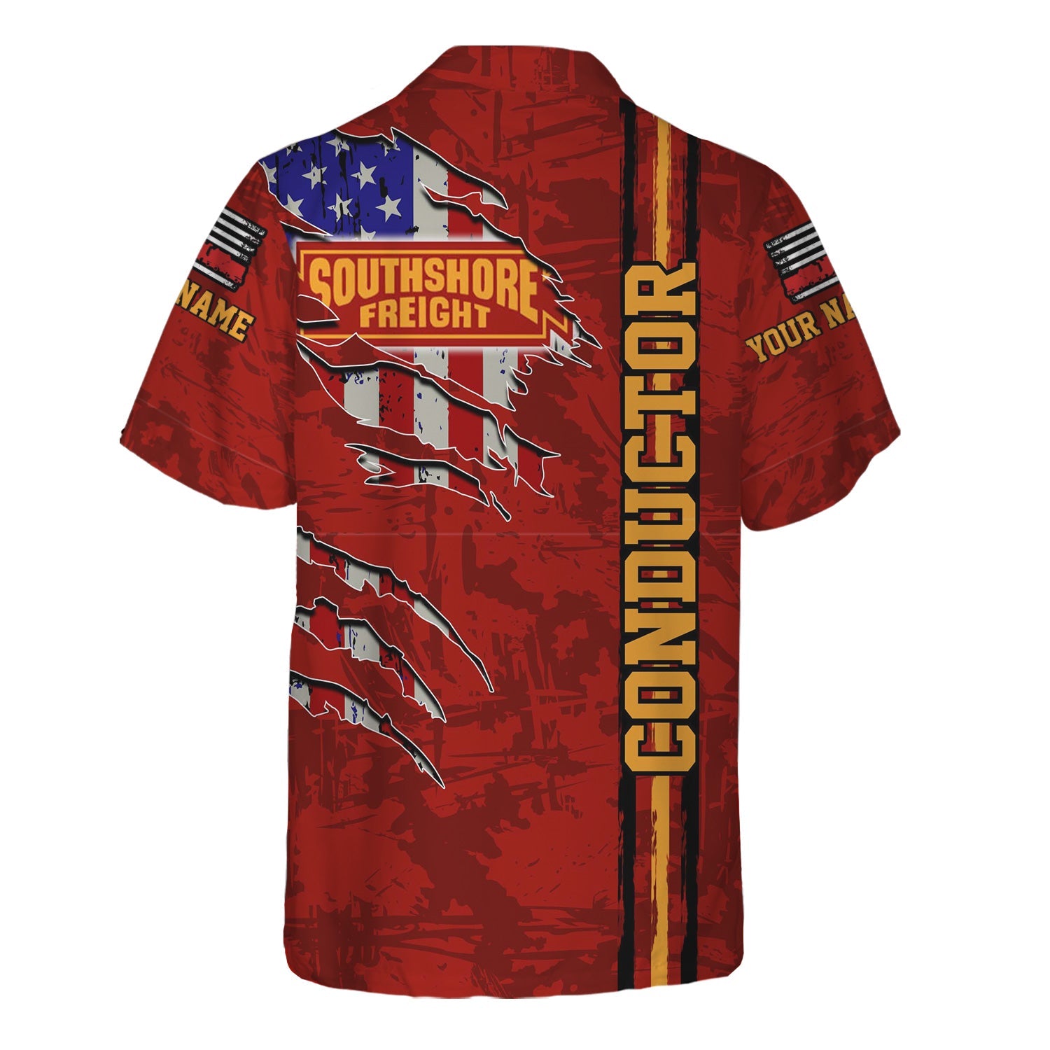 Railspirit Personalized Chicago South Shore and South Bend Railroad Hawaiian Shirt USA Flag Claw Art with Custom Job Train Shirt