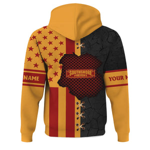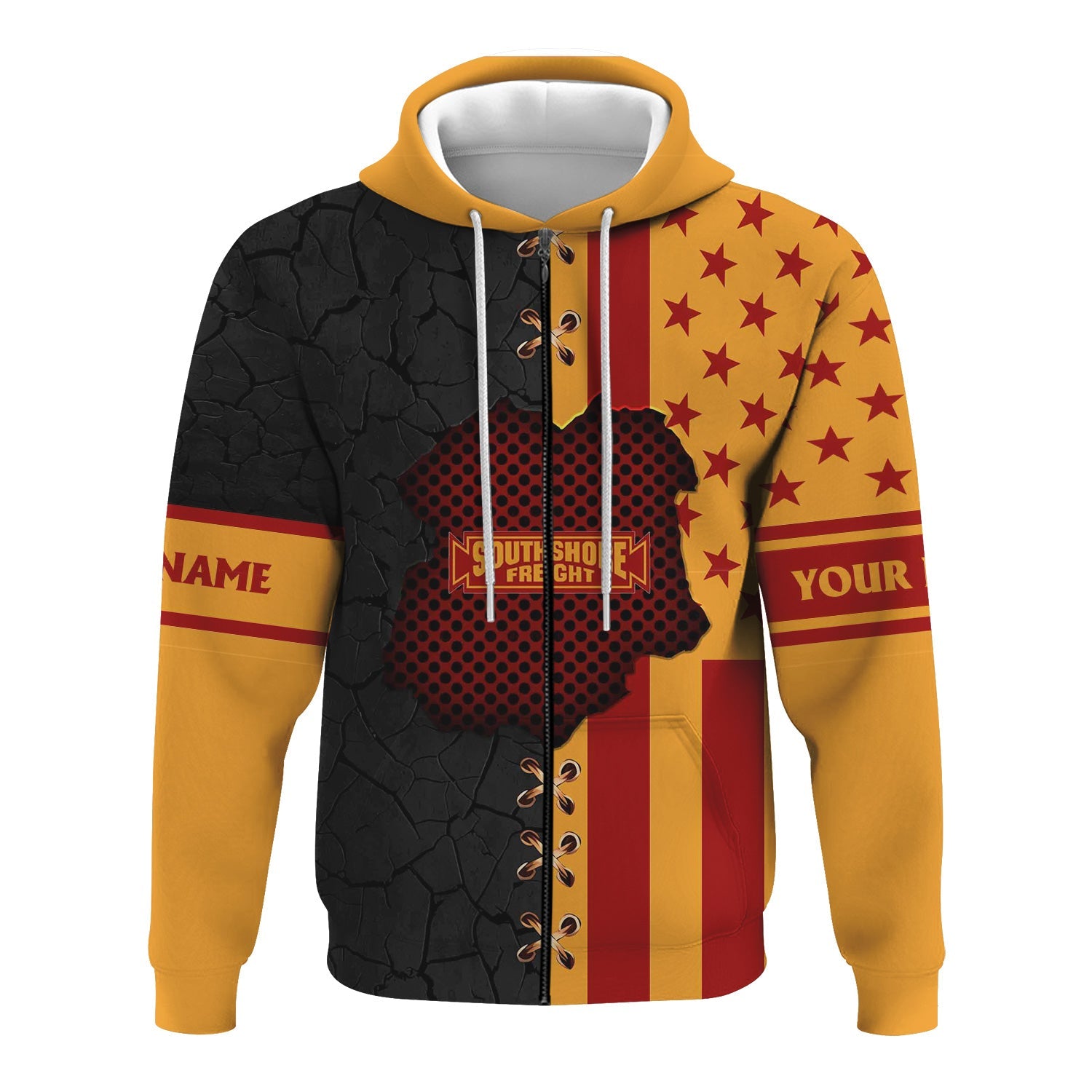 Railspirit Personalized Chicago South Shore and South Bend Railroad Hoodie American Flag with Crack Effect Train Zip Up Hoodie
