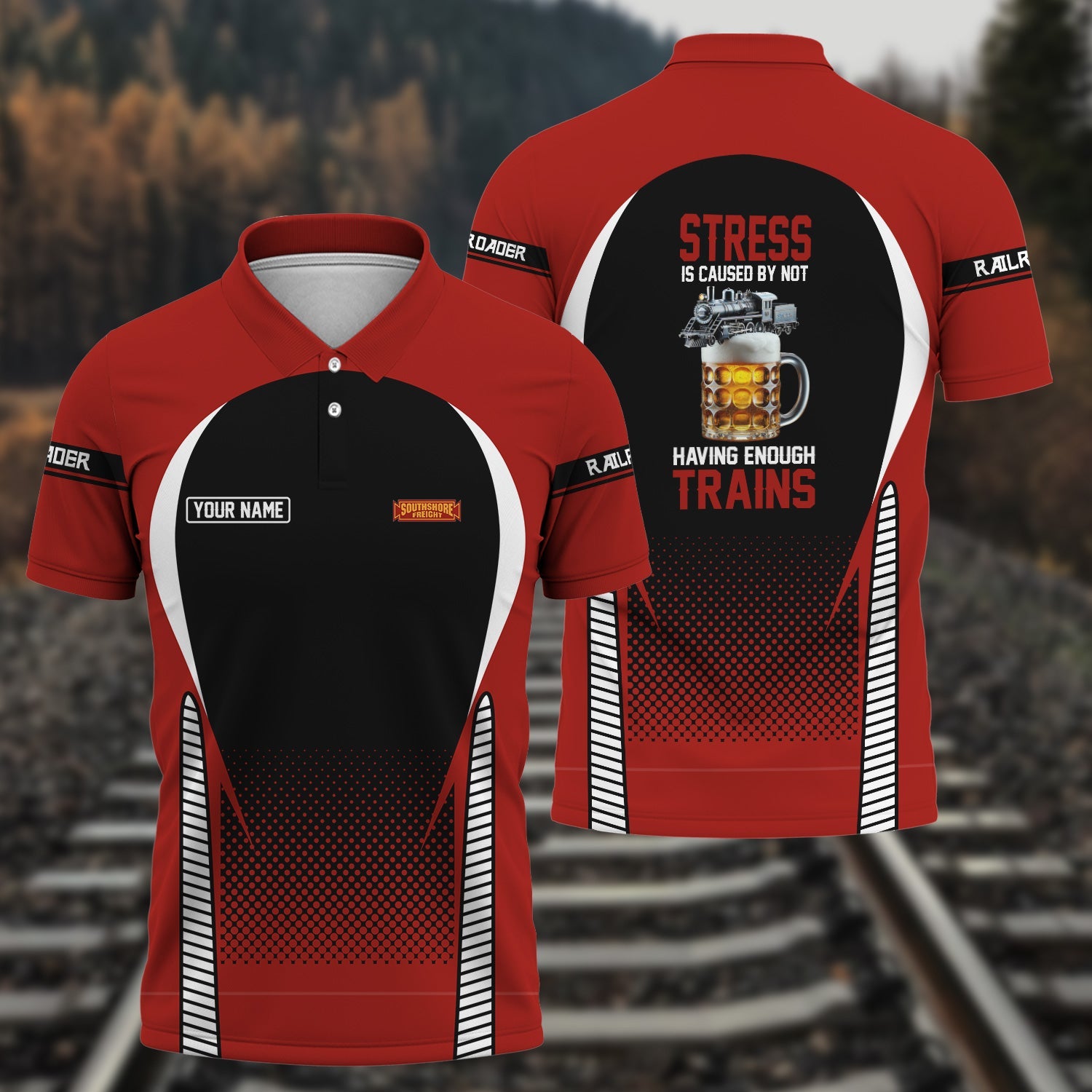 Railspirit Personalized Chicago South Shore and South Bend Railroad Polo Shirt Stress Is Caused By Not Having Enough Trains Shirt All Over Print