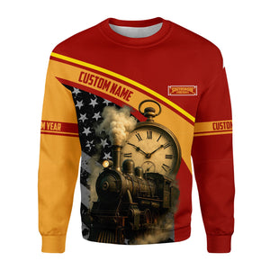Railspirit Personalized Chicago South Shore and South Bend Railroad Sweatshirt Classic Steam Engine With Retro Pocket Watch Shirt All Over Print