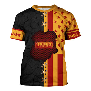 Railspirit Personalized Chicago South Shore and South Bend Railroad T-Shirt American Flag with Crack Effect Train Shirt