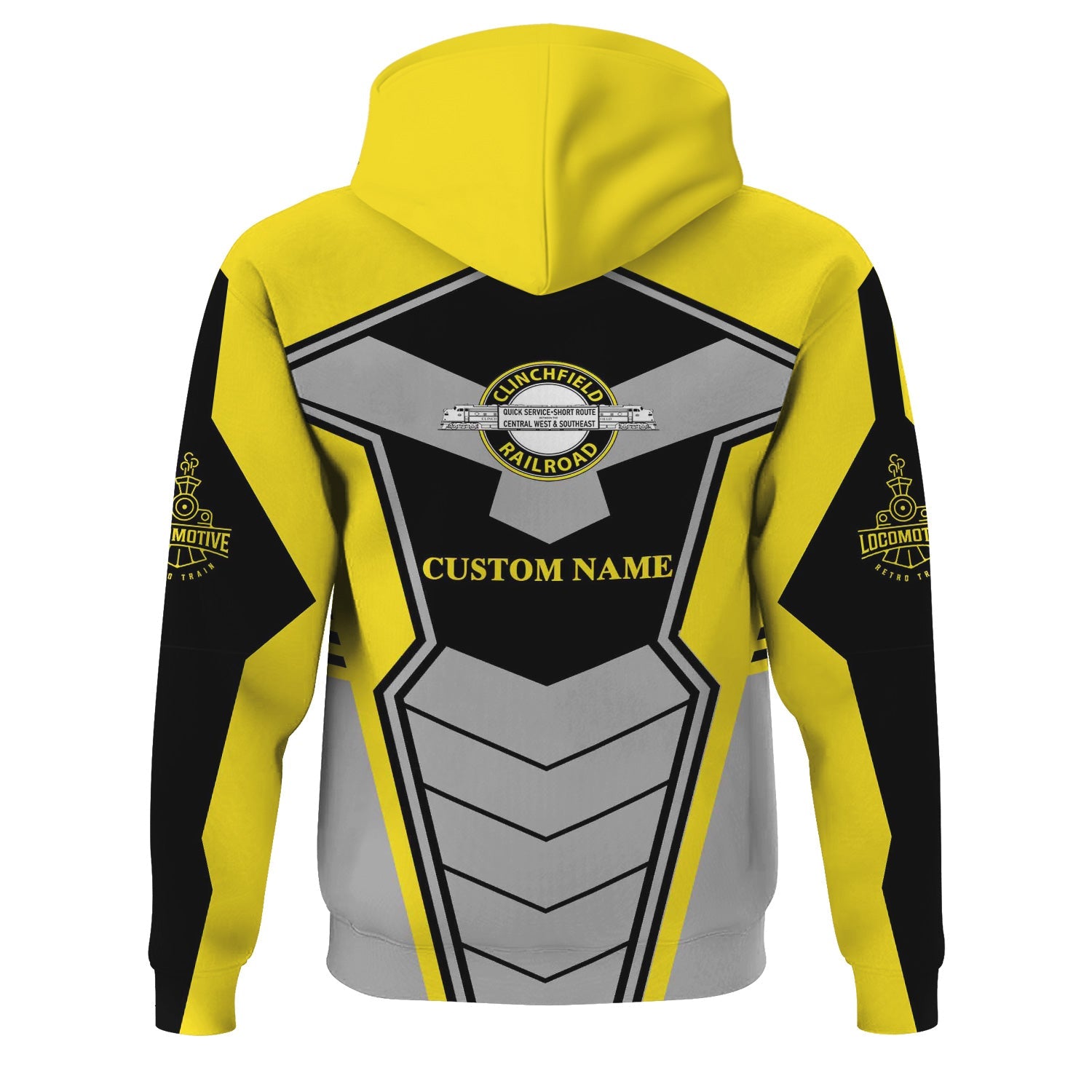 Railspirit Personalized Clinchfield Railroad Hoodie Engine-Inspired Style Train Zip Up Hoodie for Railroad Fanatic