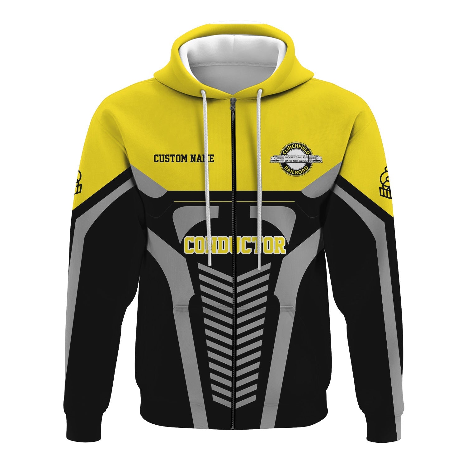 Railspirit Personalized Clinchfield Railroad Hoodie Track-Inspired with Custom Job Position Train Zip Up Hoodie