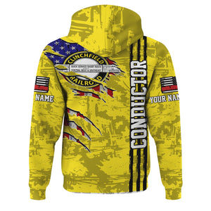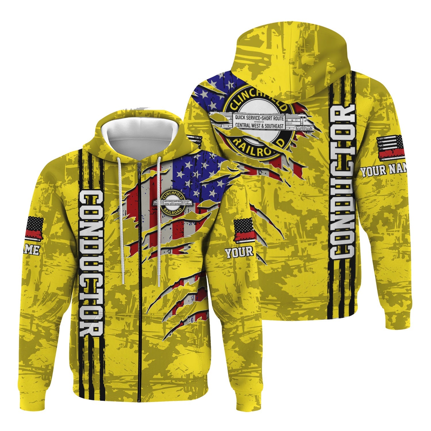 Railspirit Personalized Clinchfield Railroad Hoodie USA Flag Claw Art with Custom Job Train Zip Up Hoodie