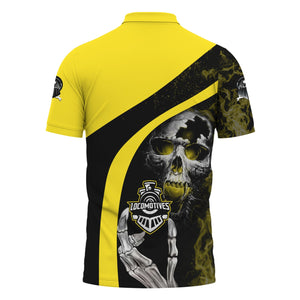 Railspirit Personalized Clinchfield Railroad Polo Shirt Flame Skull Design Train Shirt for Locomotive Fans