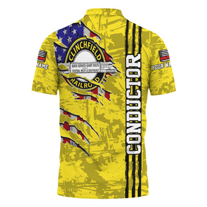 Railspirit Personalized Clinchfield Railroad Polo Shirt USA Flag Claw Art with Custom Job Train Shirt