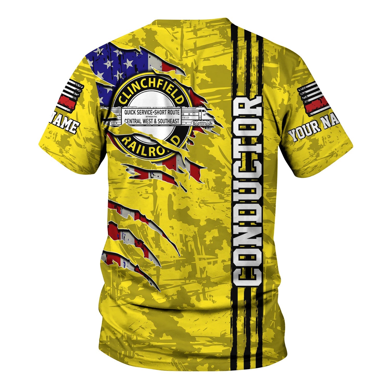 Railspirit Personalized Clinchfield Railroad T-Shirt USA Flag Claw Art with Custom Job Train Shirt