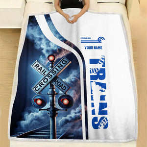 Railspirit Personalized Conrail Railroad Blanket Railroad Crossing Sign Blanket All Over Print