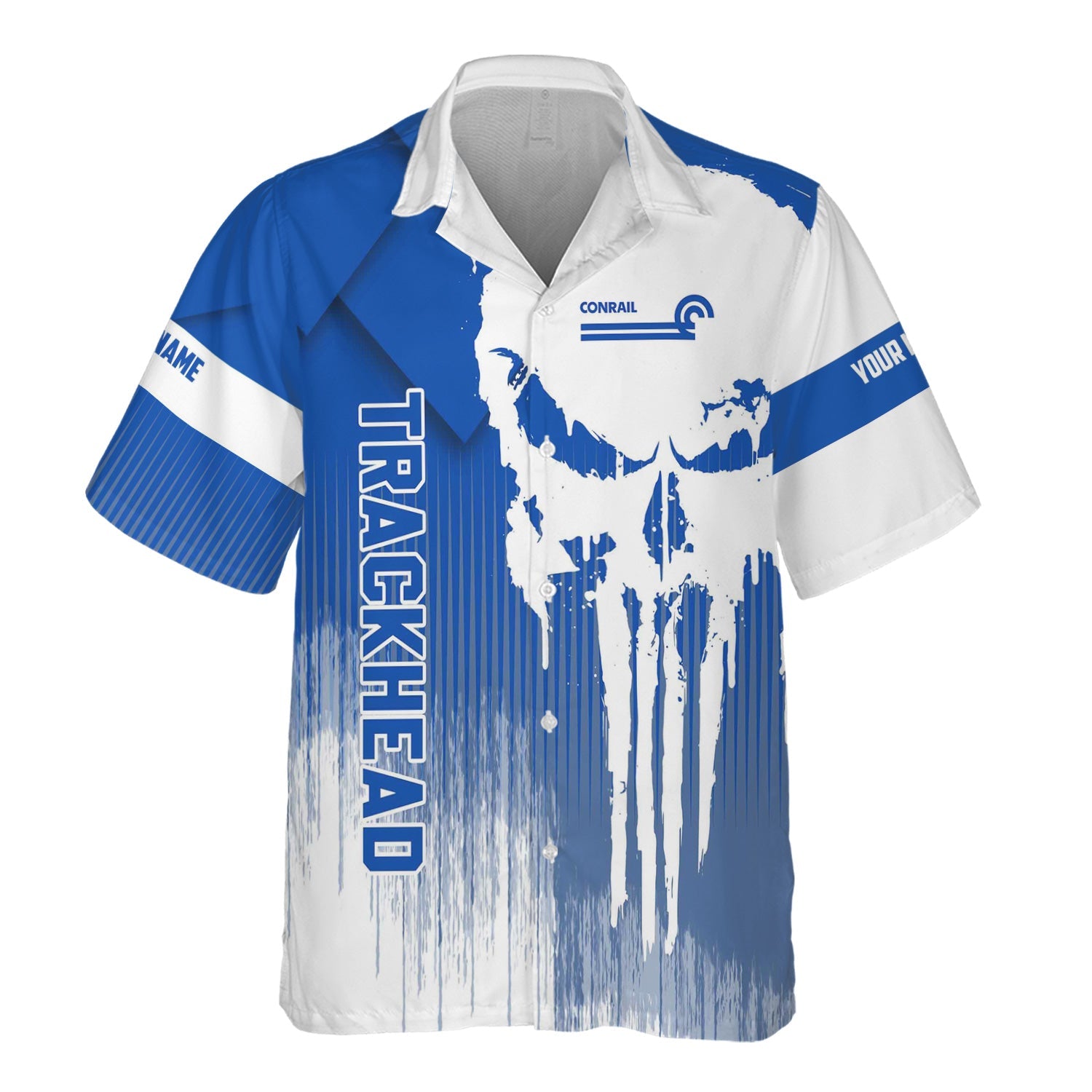 Railspirit Personalized Conrail Railroad Hawaiian Shirt Skull Design with Custom Job Train Shirt for Trackhead Crew