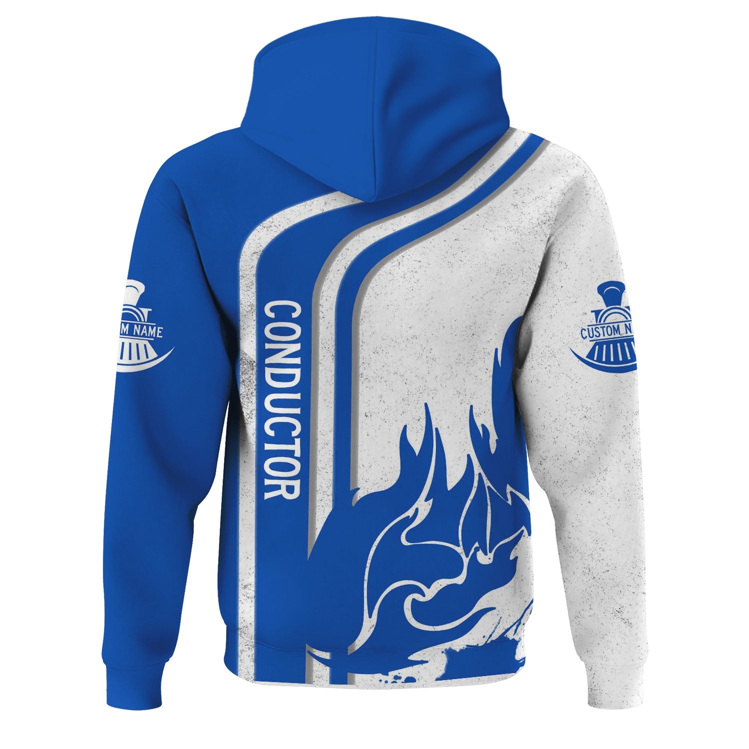 Railspirit Personalized Conrail Railroad Hoodie Flame Design with Custom Job Position Train Zip Up Hoodie