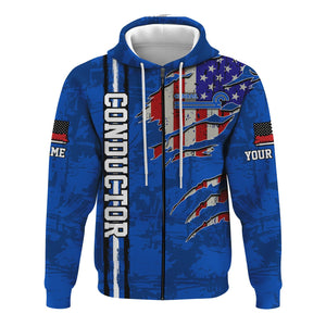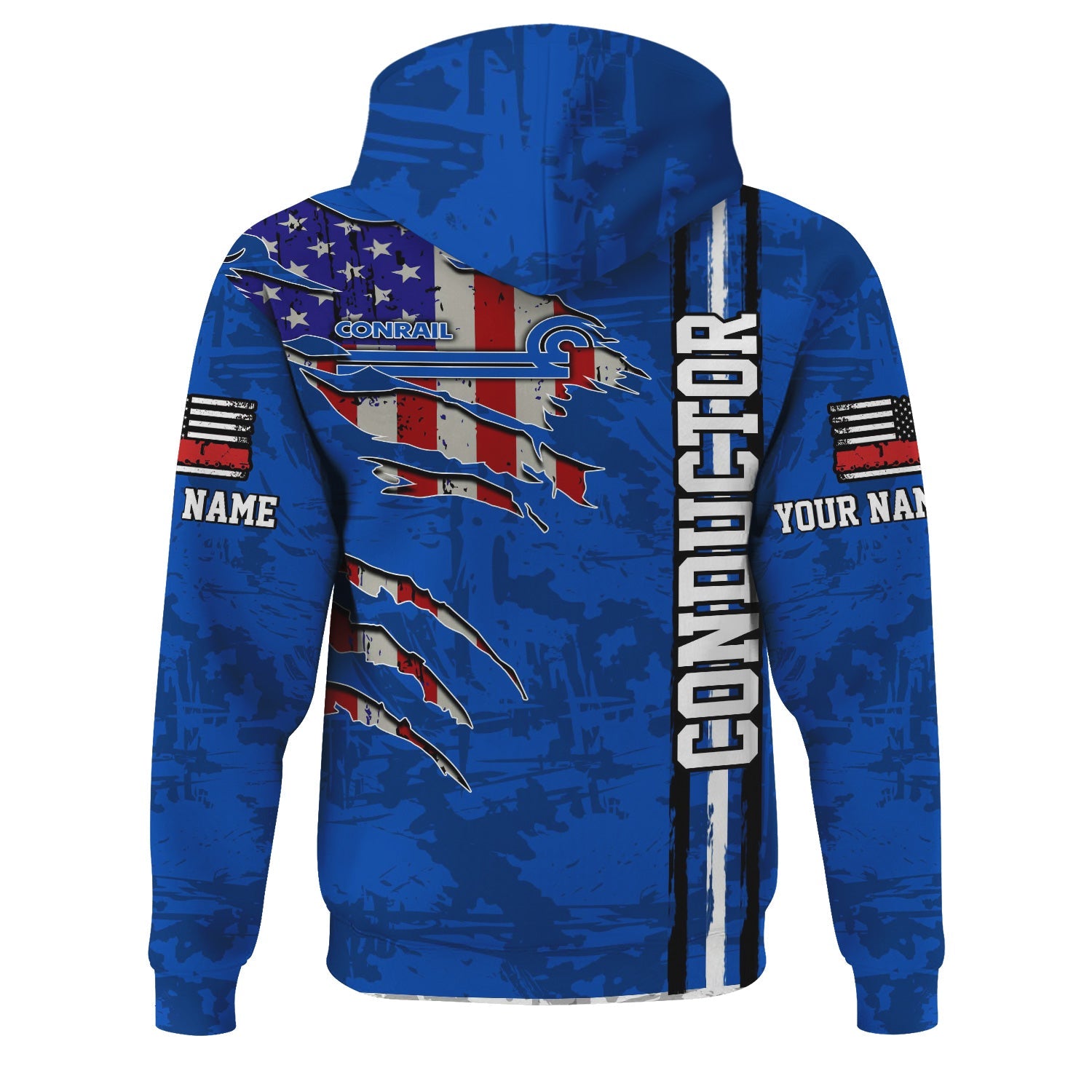 Railspirit Personalized Conrail Railroad Hoodie USA Flag Claw Art with Custom Job Train Zip Up Hoodie
