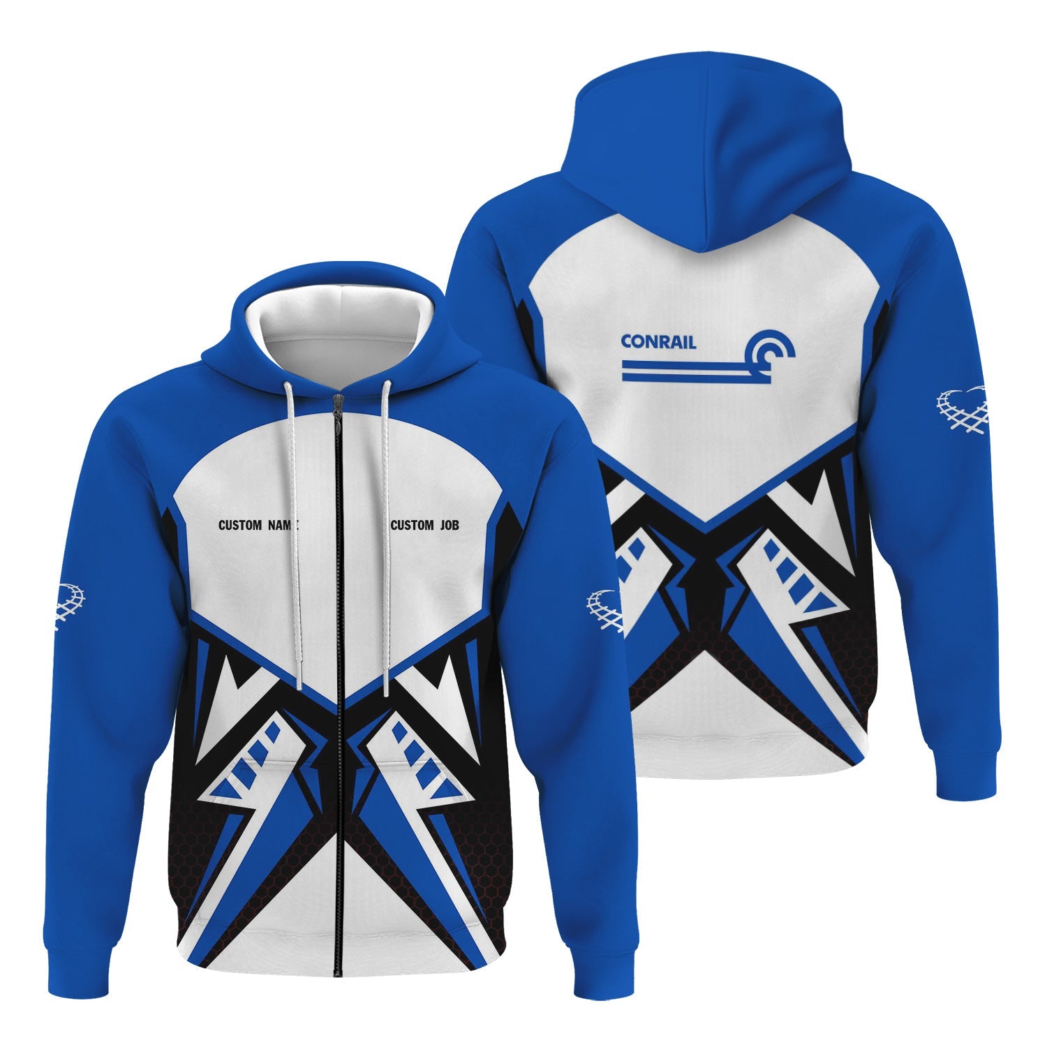 Railspirit Personalized Conrail Railroad Hoodie Vibriant Style with Custom Position Train Zip Up Hoodie