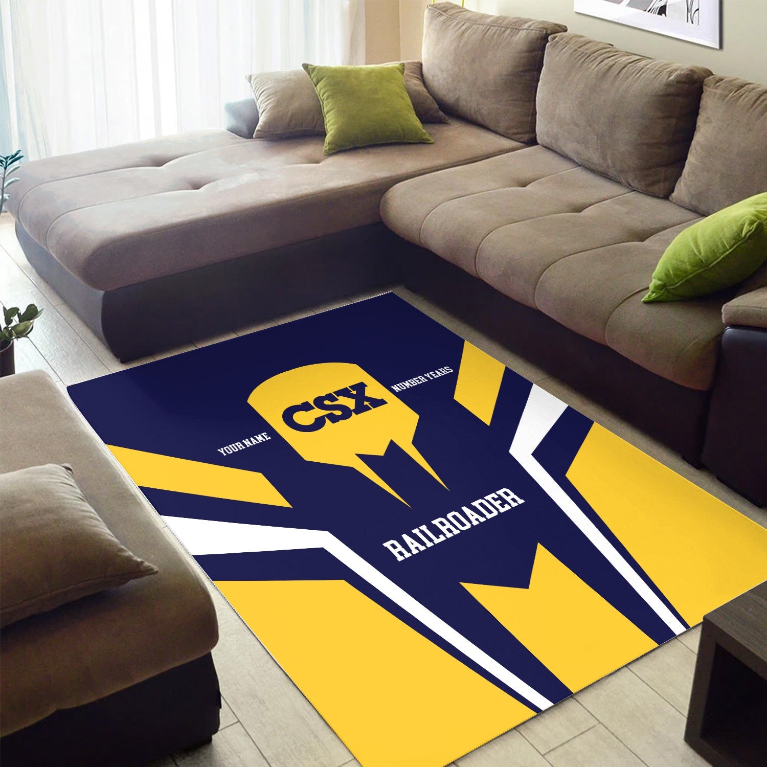 Railspirit Personalized CSX Transportation Railroad Area Rug Custom Year Railroader Rug Gift Idea For Train Lover