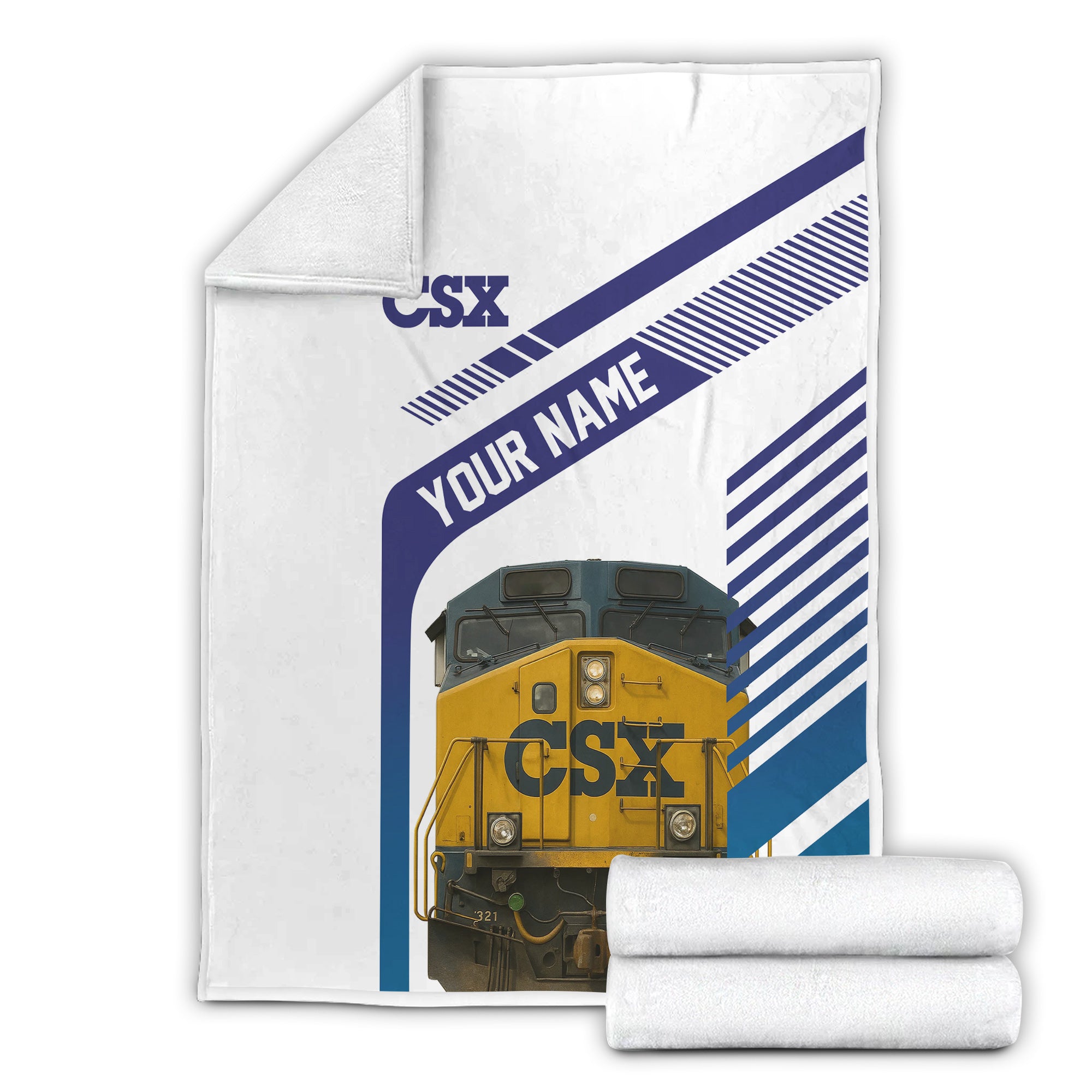 Railspirit Personalized CSX Transportation Railroad Blanket CSX Engine Graphic Blanket