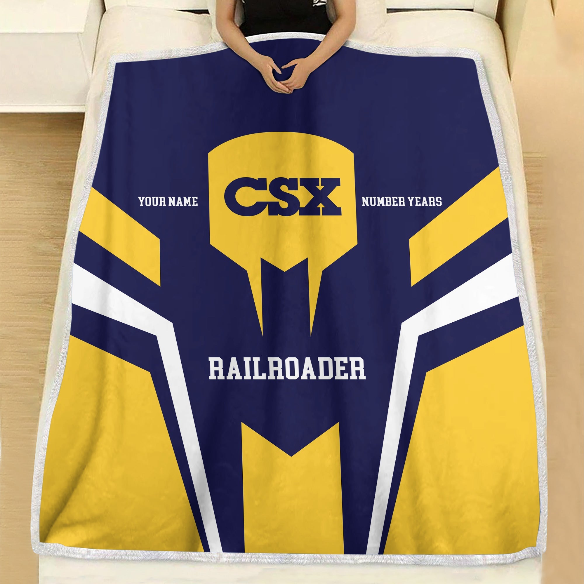 Railspirit Personalized CSX Transportation Railroad Blanket Custom Year Railroader Gift Idea For Train Lover