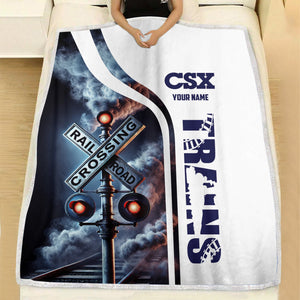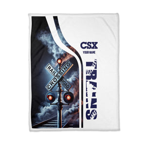 Railspirit Personalized CSX Transportation Railroad Blanket Railroad Crossing Sign Blanket All Over Print