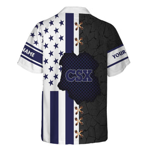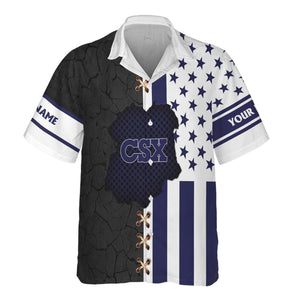 Railspirit Personalized CSX Transportation Railroad Hawaiian Shirt American Flag with Crack Effect Train Shirt