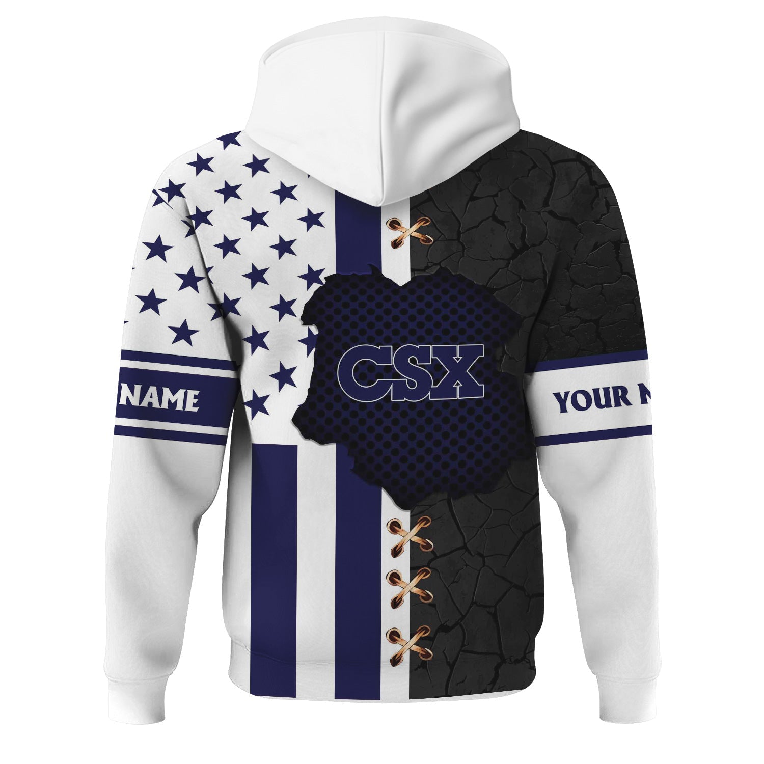 Railspirit Personalized CSX Transportation Railroad Hoodie American Flag with Crack Effect Train Zip Up Hoodie