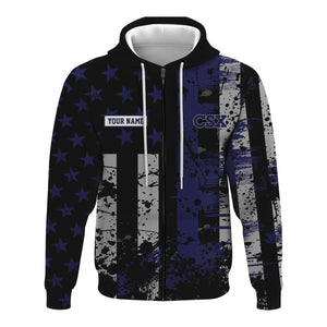 Railspirit Personalized CSX Transportation Railroad Hoodie Artistic Paint American Flag Style Train Zip Up Hoodie
