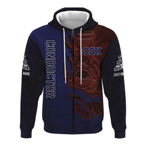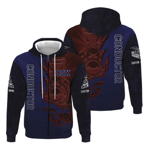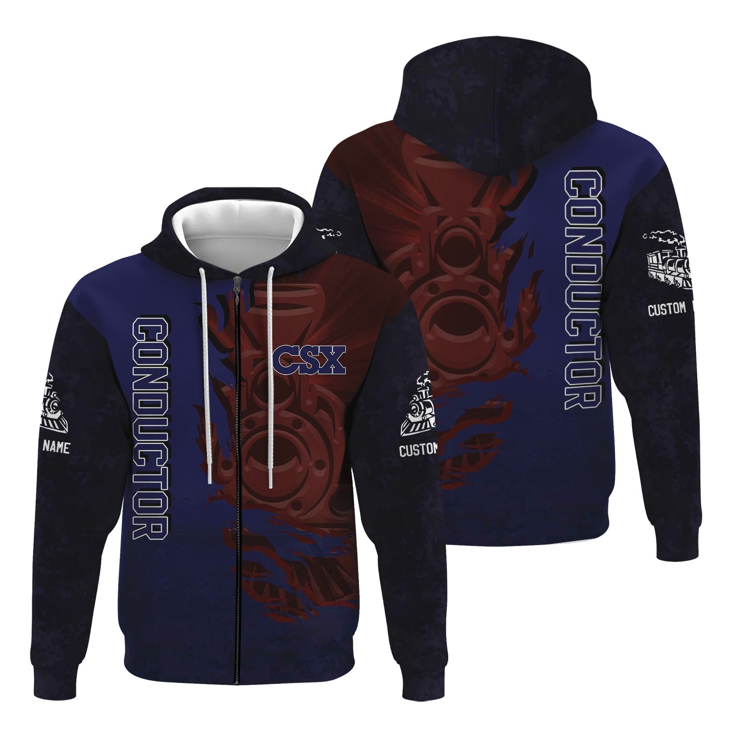 Railspirit Personalized CSX Transportation Railroad Hoodie Blazing Style with Custom Position Train Zip Up Hoodie